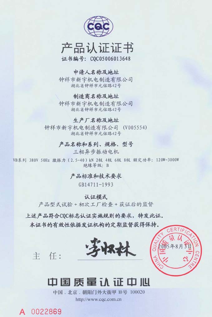 鐘祥新宇機電制造股份有限公司前身是鐘祥電機廠,1968年籌建工廠,原機電部確認為定點生產中小型電機的專業(yè)廠家。主要生產各類振動電機、振動機械、輸送機械。是中國電器工業(yè)協(xié)會中小型電機分會理事單位、中國重型機械工業(yè)協(xié)會洗選設備專業(yè)委員會理事單位,是中國大型的振動電機生產廠家。