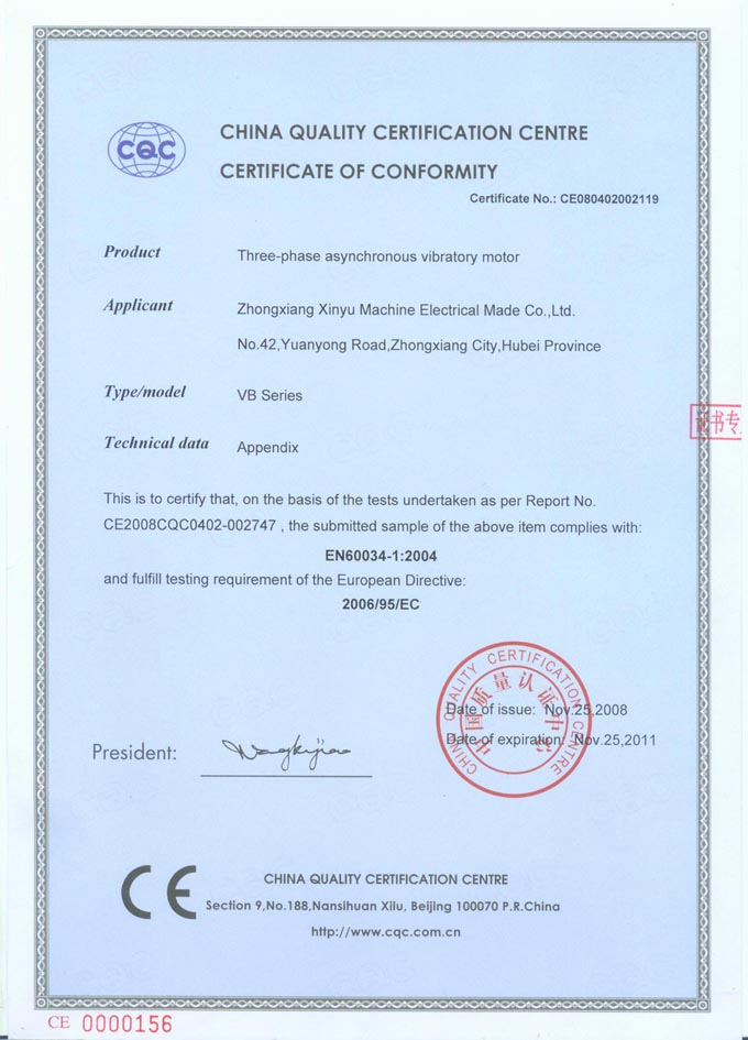 鐘祥新宇機(jī)電制造股份有限公司前身是鐘祥電機(jī)廠,1968年籌建工廠,原機(jī)電部確認(rèn)為定點(diǎn)生產(chǎn)中小型電機(jī)的專業(yè)廠家。主要生產(chǎn)各類振動(dòng)電機(jī)、振動(dòng)機(jī)械、輸送機(jī)械。是中國(guó)電器工業(yè)協(xié)會(huì)中小型電機(jī)分會(huì)理事單位、中國(guó)重型機(jī)械工業(yè)協(xié)會(huì)洗選設(shè)備專業(yè)委員會(huì)理事單位,是中國(guó)大型的振動(dòng)電機(jī)生產(chǎn)廠家。