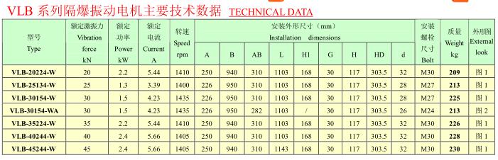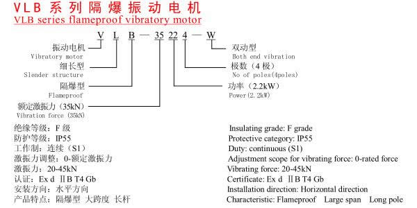 VLB系列戶外隔爆振動(dòng)電機(jī) VLB、VLBL系列戶外隔爆振動(dòng)電機(jī)設(shè)計(jì)成細(xì)長結(jié)構(gòu),激振力作用點(diǎn)距離(地腳孔的距離)特寬,尤其適用于寬距離處傳遞激振力的場(chǎng)合,廣泛用作石油行業(yè)泥漿分離篩激振源。泥漿分離篩裝配此類振動(dòng)電機(jī),VLB系列戶外隔爆振動(dòng)電機(jī) VLBL系列戶外隔爆振動(dòng)電機(jī)運(yùn)行更平穩(wěn),構(gòu)件受力更均勻,有效延長其使用壽命。VLBL系列是在VLB系列基礎(chǔ)上結(jié)合油田的使用狀況,新研發(fā)的一種鋁合金殼體的新型振動(dòng)電機(jī)。其結(jié)構(gòu)合理、質(zhì)量輕,參振質(zhì)量與同類產(chǎn)品相比大幅度降低。VLB、VLBL系列產(chǎn)品可單獨(dú)使用,亦可組合使用。其防爆性能符合GB3836.2-2000《爆炸性氣體環(huán)境用電氣設(shè)備第二部分:隔爆型“d”》的規(guī)定,防爆標(biāo)志為dIIBT4,適用于 II類A、B級(jí)T4組別可燃性氣體或蒸汽與空氣形成的爆炸性混合物的場(chǎng)所。